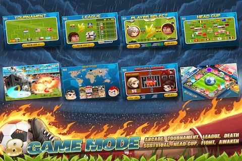 (Arcade, Tournament, Survival, League, Head Cup, Death Mode, Fight Mode, Awaken Mode)